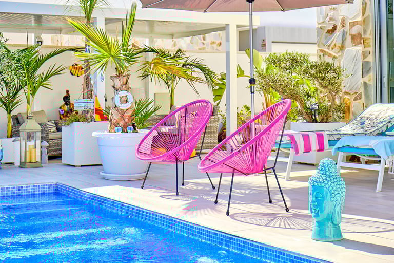 El exterior de la propiedad es tan importante como su interior. Si tienes terrazas, patios o jardines, arréglalos para que luzcan atractivos y acogedores. Limpia los muebles de exterior, quita la maleza y arregla cualquier área desordenada. Añade algunos toques decorativos al aire libre, como cojines para sillas, plantas en macetas o luces suaves. Si es posible, realiza tomas al atardecer o en horario nocturno para destacar la iluminación exterior.
