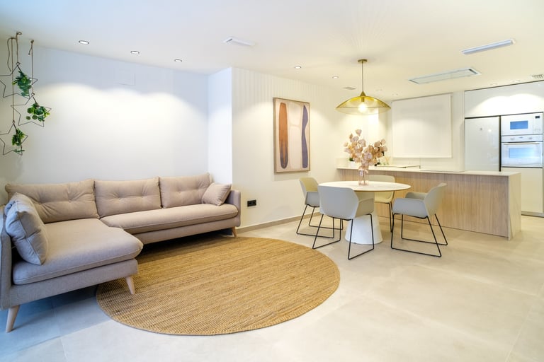 Opta por una decoración neutra y minimalista que pueda atraer a una amplia variedad de compradores. Los tonos suaves y neutros en las paredes y muebles pueden hacer que los espacios se vean más amplios y luminosos en las fotos. Elimina objetos personales como fotografías familiares o decoración muy específica que pueda no ser del gusto de todos los compradores.